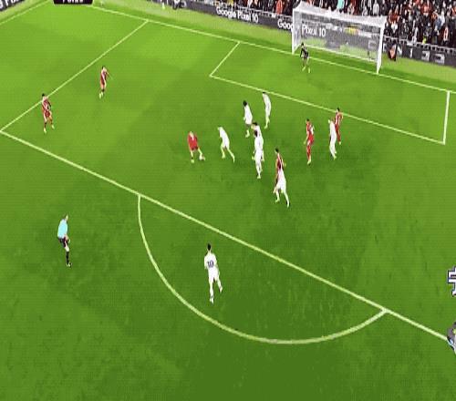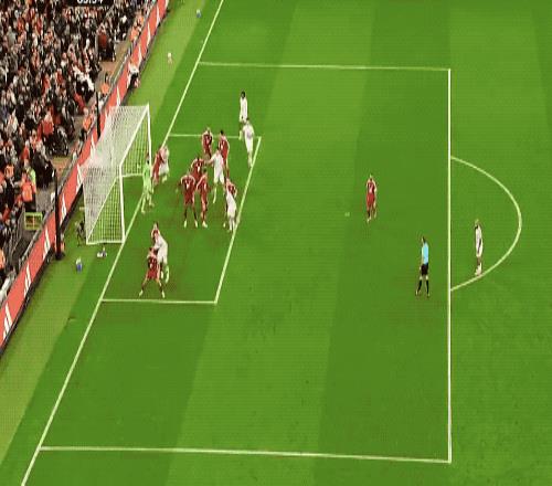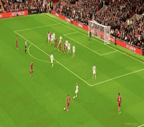 第18分钟,萨拉赫和伊萨克打出精彩配合,关键时刻,卢克肖倒地放铲,化解险情。